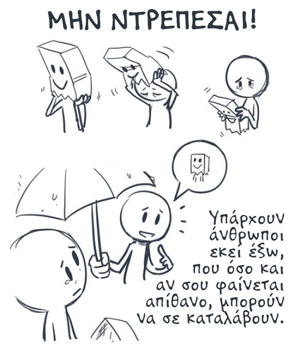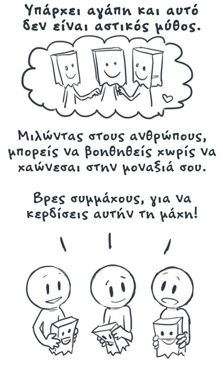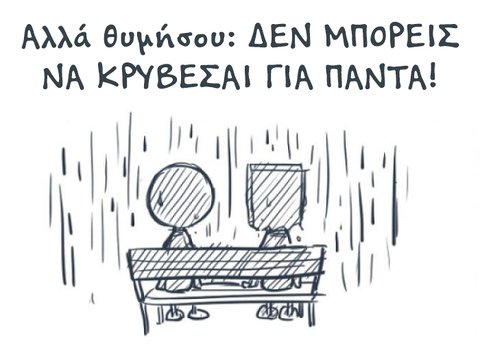 Μια απεικόνιση, που μπορεί να σε κάνει να αναγνωρίσεις τον εαυτό σου σε μια πλαστή καθημερινότητα, που δείχνεις ενώ δεν είσαι καλά. Αν πραγματικά μπορείς να διακρίνεις στοιχεία δικά σου, στις παρακάτω εικόνες, αναζήτησε βοήθεια από ανθρώπους που θέλουν να είσαι και όχι απλά να δείχνεις ευτυχισμένος.