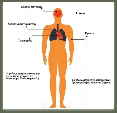 Σωματικά–> διαταραγμένος ύπνος, πονοκέφαλοι, σφίξιμο στο στήθος, σφίξιμο στο στομάχι, ταχυκαρδία